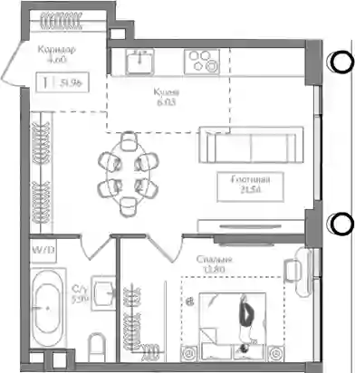 В жилом комплексе представлен широкий выбор планировочных решений: от уютных студий до просторных 4-х комнатных квартир европейского формата. Площадь квартир варьируется от 28 до 88 квадратных метров. В квартирах предусмотрены ниши для шкафов и гардеробных, а также кухни-гостиные и мастер-спальни с отдельной гардеробной комнатой и санузлом. На верхних этажах находятся видовые пентхаусы площадью от 121 до 297 кв. метров с собственными террасами. Квартиры сдаются без отделки и внутренних перегородок. В каждой квартире высокие потолки и панорамное остекление. Из 95% квартир открывается вид на Москву-реку.