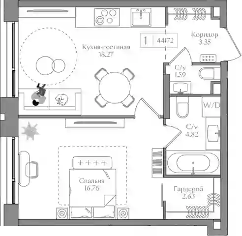 В жилом комплексе представлен широкий выбор планировочных решений: от уютных студий до просторных 4-х комнатных квартир европейского формата. Площадь квартир варьируется от 28 до 88 квадратных метров. В квартирах предусмотрены ниши для шкафов и гардеробных, а также кухни-гостиные и мастер-спальни с отдельной гардеробной комнатой и санузлом. На верхних этажах находятся видовые пентхаусы площадью от 121 до 297 кв. метров с собственными террасами. Квартиры сдаются без отделки и внутренних перегородок. В каждой квартире высокие потолки и панорамное остекление. Из 95% квартир открывается вид на Москву-реку.