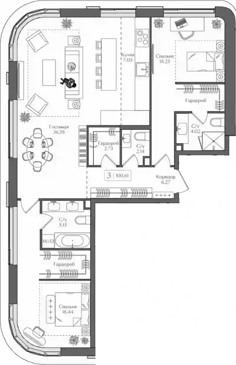 3-к.квартира, 100.61 м², 12 эт. в ЖК Преображенская площадь Корпус 6