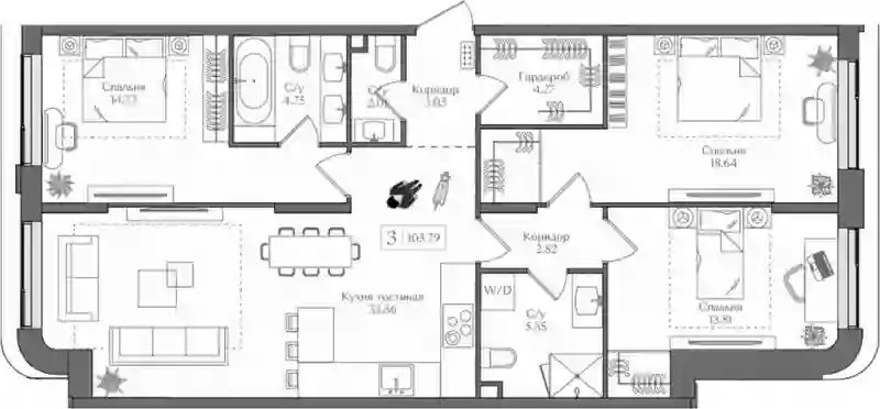 4-к.квартира, 103.79 м², 5 эт. в ЖК Преображенская площадь Корпус 6