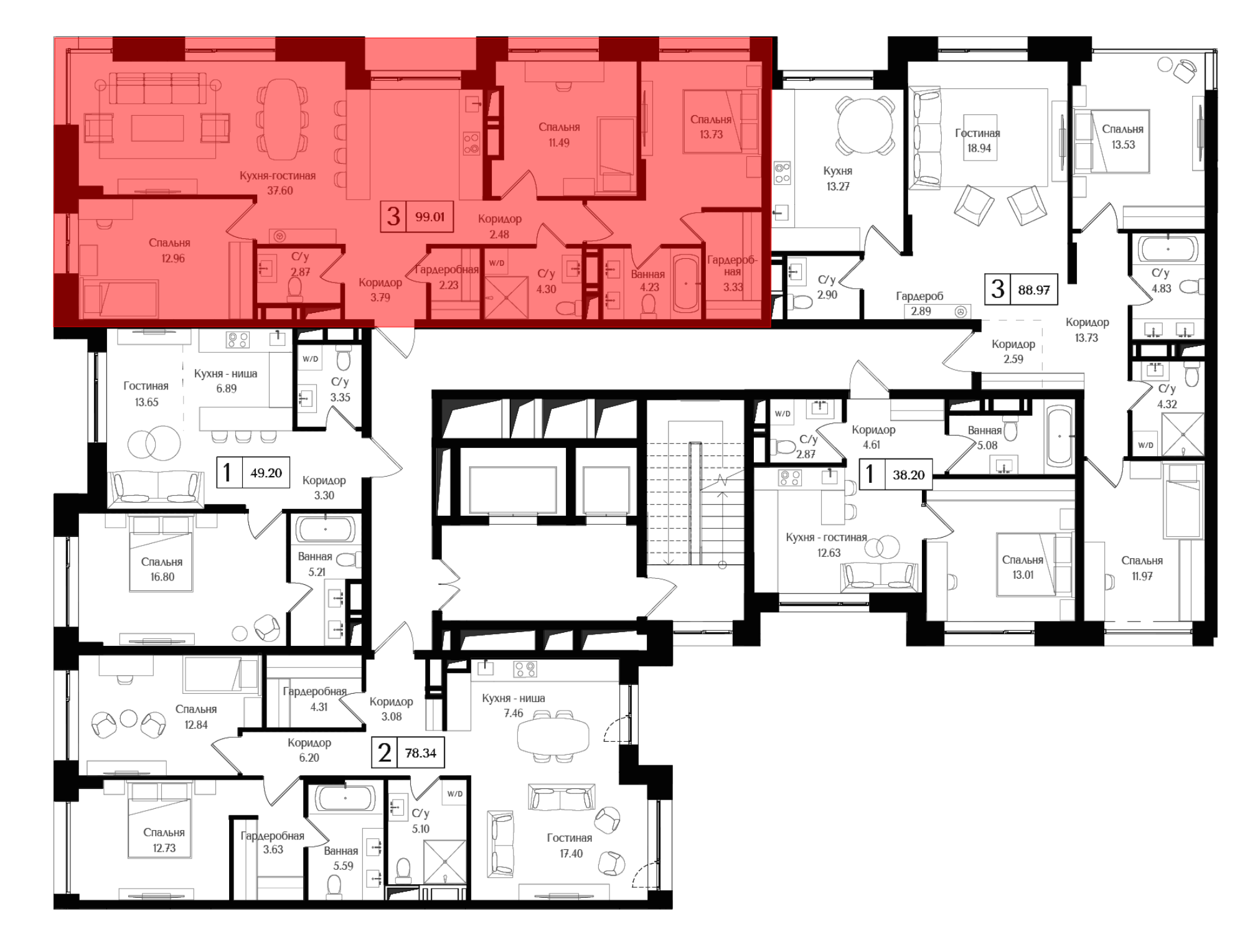 В жилом комплексе «Преображенская площадь» предложено множество планировочных решений: в наличии квартиры, как классического типа, так и европланировки. Сдаются они без отделки, высокими потолками от 3,1 метров и с увеличенными окнами.