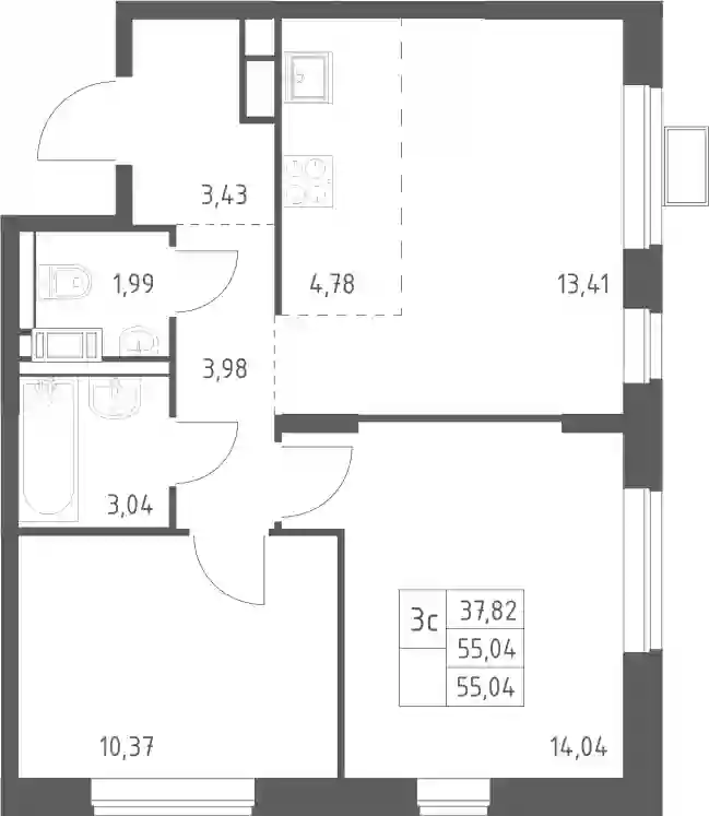 3-к.квартира, 55.04 м², 17 эт. в ЖК Прибрежный Парк Корпус 9.2