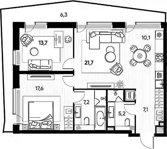 43 570 837 ₽3-к.квартира, 74.7 м², 3 эт.
