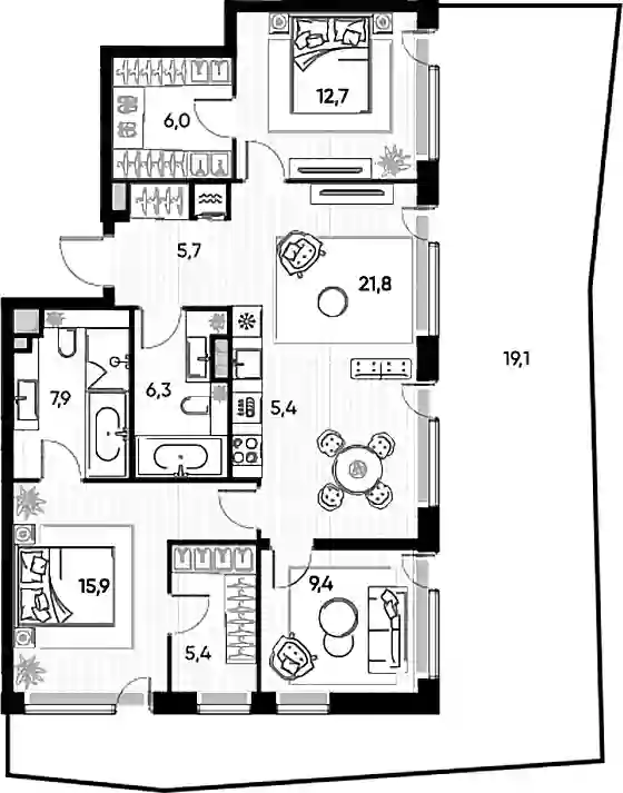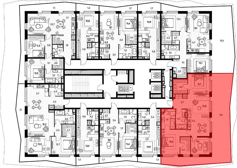 4-к.квартира, 96.5 м², 15 эт. в ЖК PRIDE Корпус 1 (10 секция)