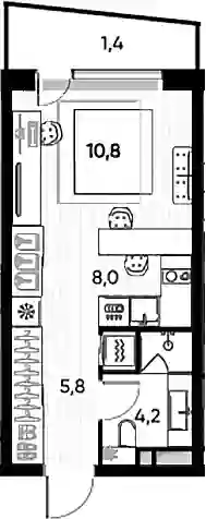 Студия, 28.8 м², 15 эт. в ЖК PRIDE Корпус 1 (10 секция)