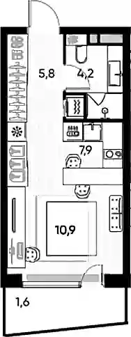 Студия, 28.8 м², 15 эт. в ЖК PRIDE Корпус 1 (10 секция)