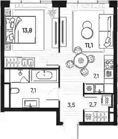 2-к.квартира, 45.3 м², 8 эт. в ЖК PRIDE Корпус 1
