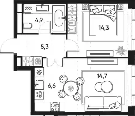 32 722 140 ₽2-к.квартира, 47 м², 14 эт.