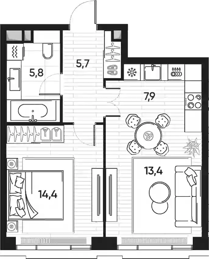49 105 700 ₽2-к.квартира, 59 м², 8 эт.