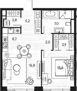 49 105 700 ₽2-к.квартира, 59 м², 8 эт.