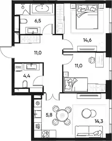 47 370 800 ₽3-к.квартира, 95.1 м², 3 эт.