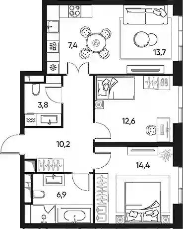41 411 282 ₽3-к.квартира, 68.6 м², 22 эт.