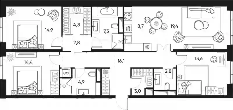 52 609 600 ₽3-к.квартира, 100.1 м², 7 эт.