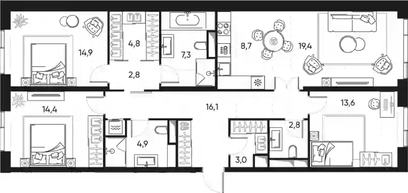 58 643 200 ₽4-к.квартира, 119.2 м², 11 эт.