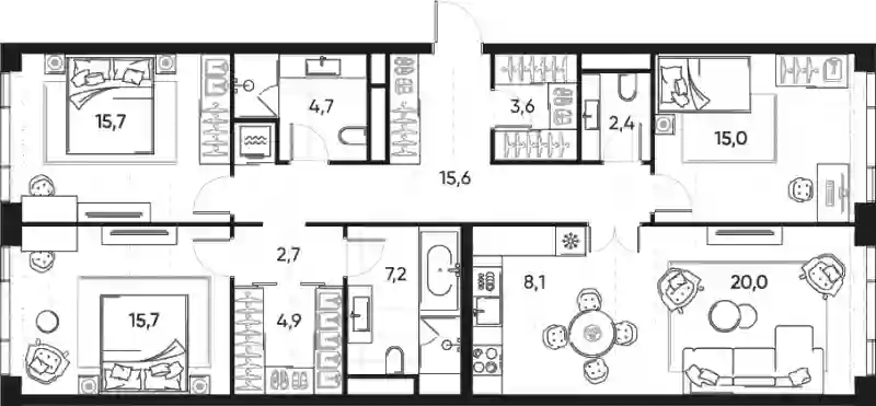 121 457 280 ₽4-к.квартира, 114.1 м², 14 эт.