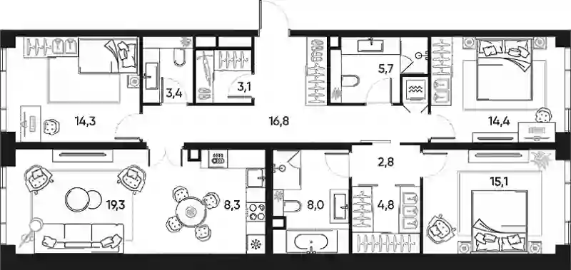 52 609 600 ₽3-к.квартира, 100.1 м², 7 эт.