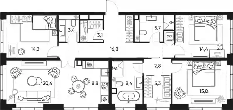 80 448 236 ₽4-к.квартира, 115.6 м², 9 эт.
