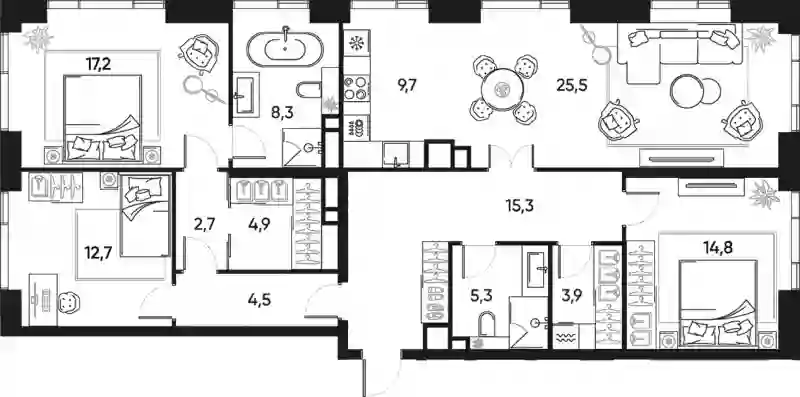 48 704 753 ₽3-к.квартира, 95.3 м², 9 эт.