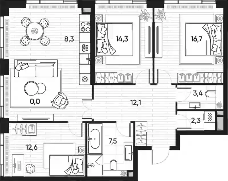 64 265 826 ₽4-к.квартира, 101.44 м², 40 эт.