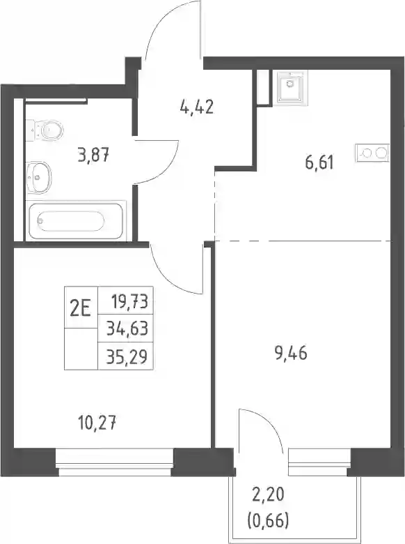 9 712 065 ₽2-к.квартира, 34.63 м², 10 эт.