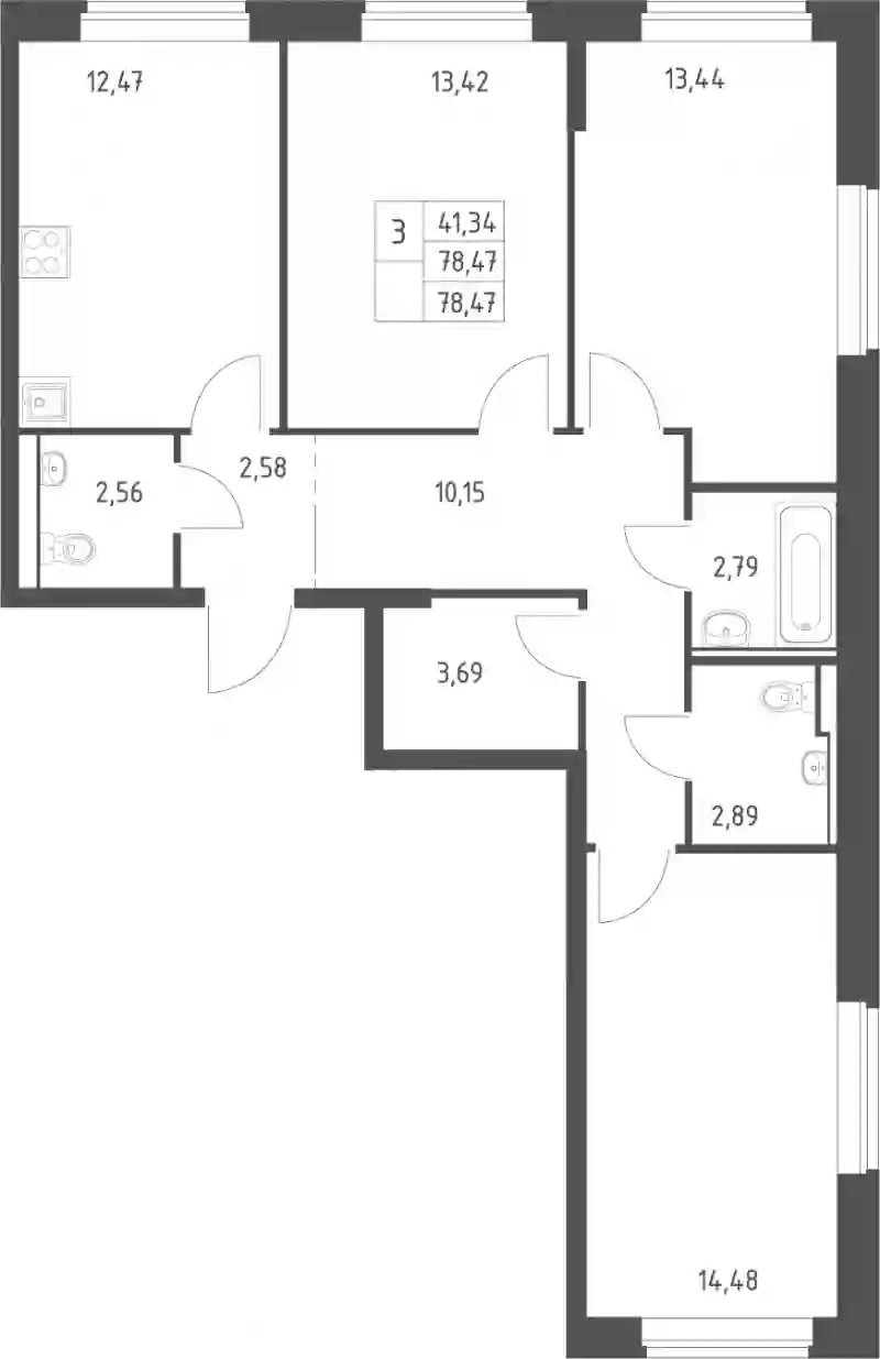 14 786 795 ₽3-к.квартира, 78.52 м², 14 эт.