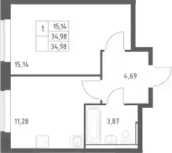 6 926 665 ₽2-к.квартира, 34.73 м², 15 эт.