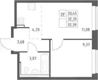 9 301 370 ₽2-к.квартира, 32.39 м², 7 эт.