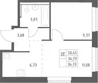 9 847 087 ₽2-к.квартира, 34.63 м², 17 эт.