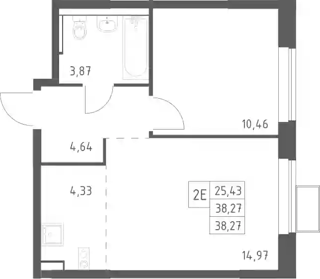 10 841 355 ₽2-к.квартира, 38.27 м², 14 эт.