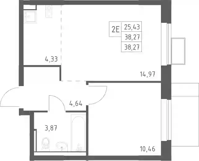 9 926 053 ₽2-к.квартира, 38.27 м², 15 эт.