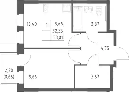 7 263 202 ₽2-к.квартира, 32.39 м², 15 эт.