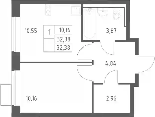 7 263 202 ₽2-к.квартира, 32.39 м², 15 эт.
