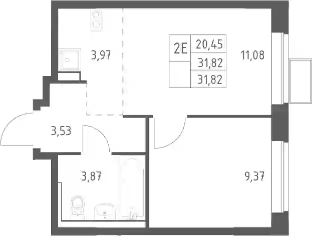 9 244 179 ₽2-к.квартира, 31.88 м², 3 эт.