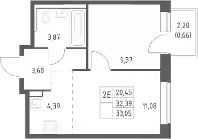 7 263 202 ₽2-к.квартира, 32.39 м², 15 эт.