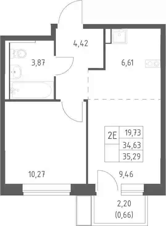 10 342 562 ₽2-к.квартира, 34.63 м², 17 эт.