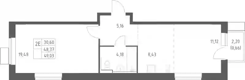 11 692 241 ₽2-к.квартира, 48.59 м², 3 эт.