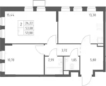 10 129 129 ₽3-к.квартира, 55.58 м², 15 эт.