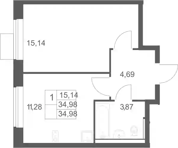 9 794 420 ₽2-к.квартира, 34.73 м², 15 эт.