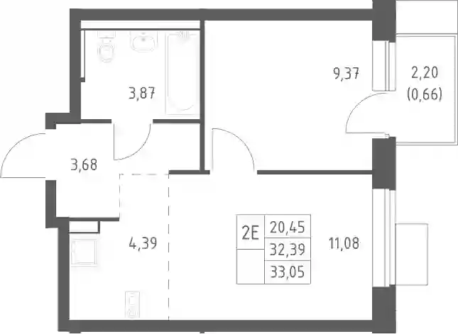 9 273 436 ₽2-к.квартира, 32.39 м², 3 эт.