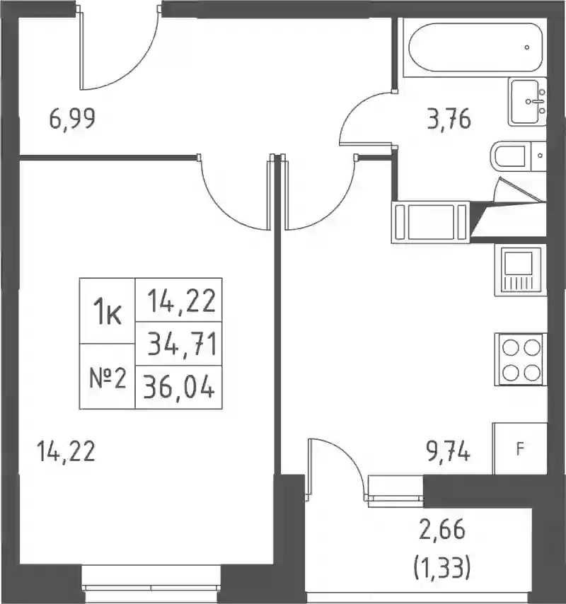 6 926 665 ₽2-к.квартира, 34.73 м², 15 эт.