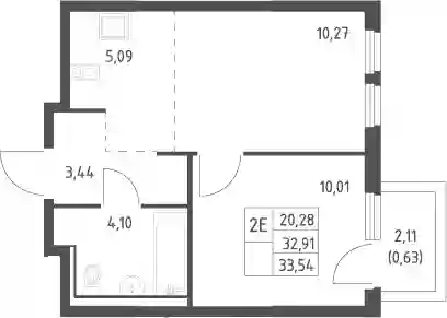 7 489 133 ₽2-к.квартира, 32.91 м², 9 эт.