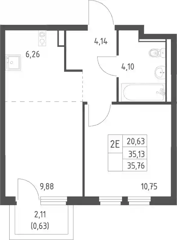 7 844 924 ₽2-к.квартира, 35.26 м², 10 эт.