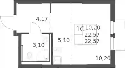 5 422 883 ₽Студия, 22.81 м², 17 эт.