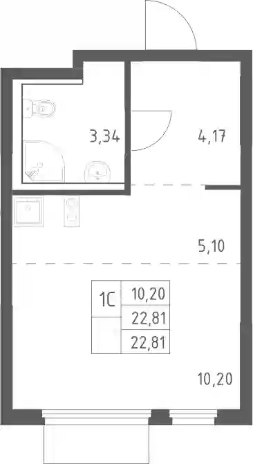 Студия, 22.81 м², 15 эт. в ЖК Пригород Лесное Корпус 19.1