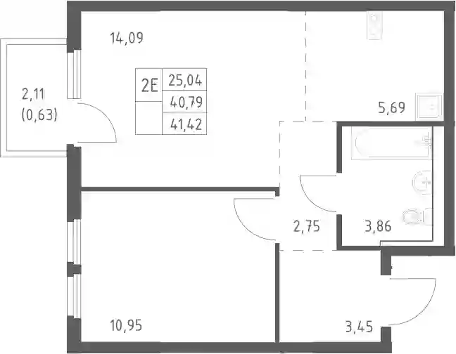 9 455 841 ₽2-к.квартира, 40.79 м², 10 эт.
