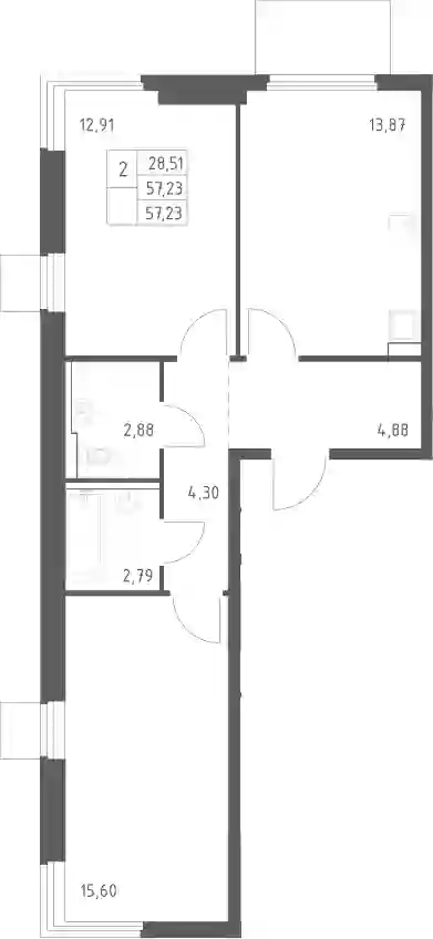 10 486 037 ₽2-к.квартира, 57.23 м², 13 эт.