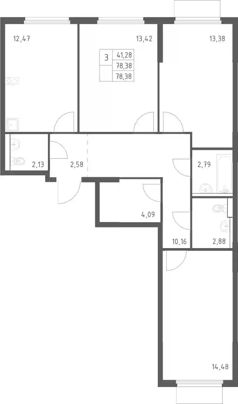 11 556 896 ₽3-к.квартира, 78.38 м², 14 эт.