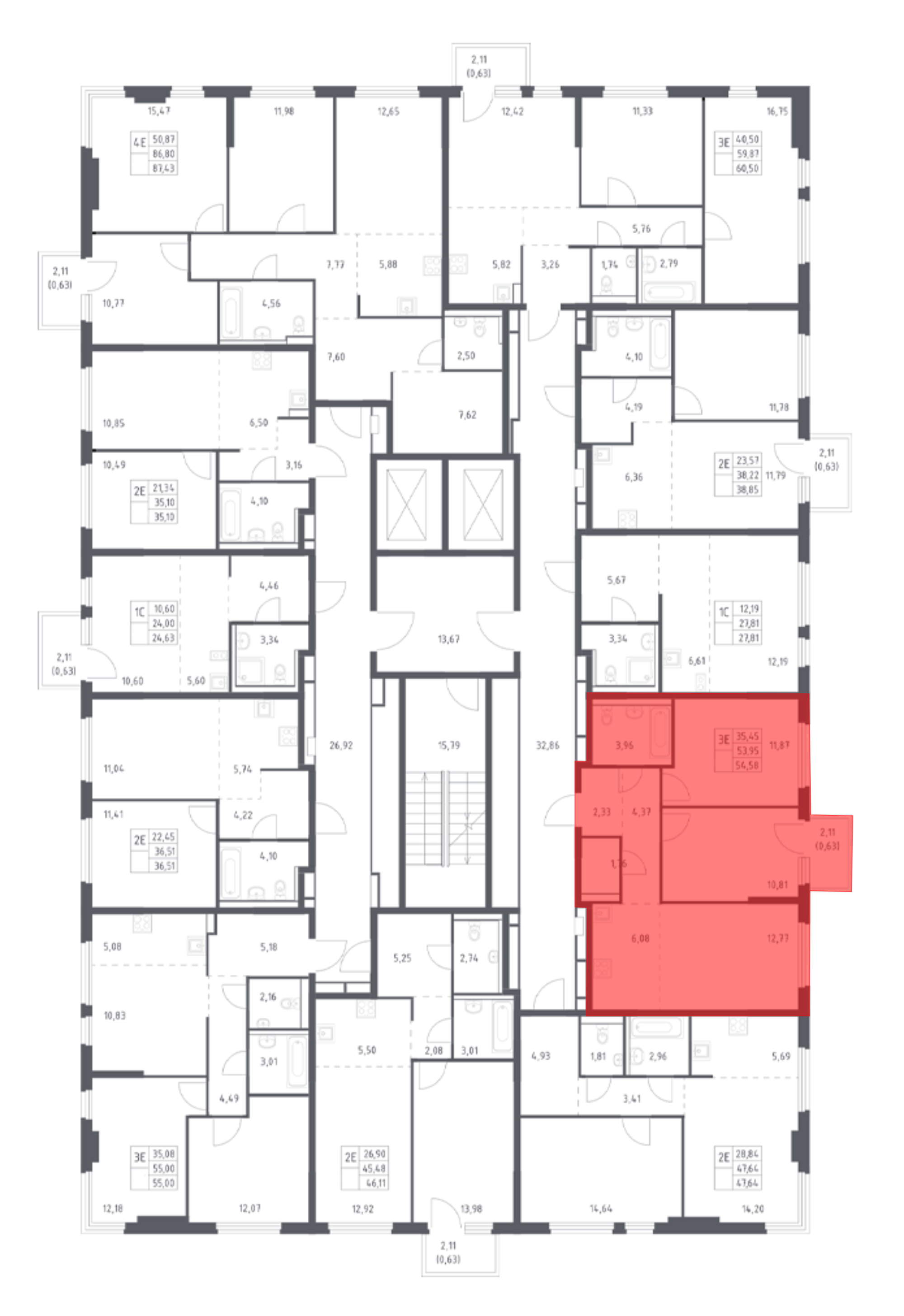 11 258 603 ₽2-к.квартира, 53.81 м², 17 эт.
