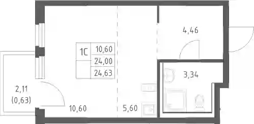 6 434 055 ₽Студия, 26.13 м², 6 эт.