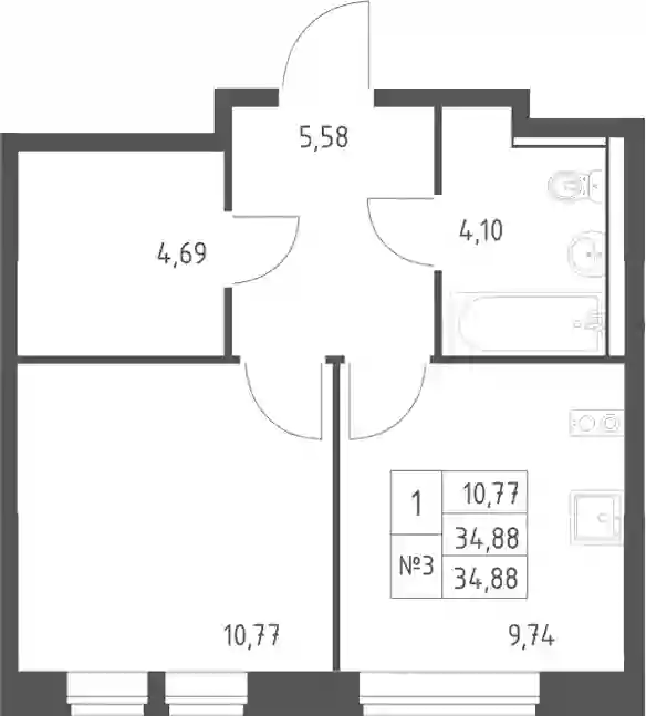 6 069 485 ₽1-к.квартира, 34.24 м², 3 эт.